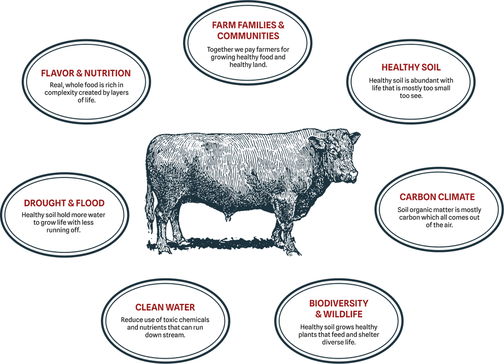 All of the minerals in food except carbon, nitrogen and oxygen come from the soil. These nutrients are mined from otherwise inert soil material by diverse microbial life. The nutrients flow up the food chain through the grass and the cow then onto your plate feeding you and your family. #BirdsTellUs that these nutrient cycles are alive and working, and thus that the food on your table is more nourishing.